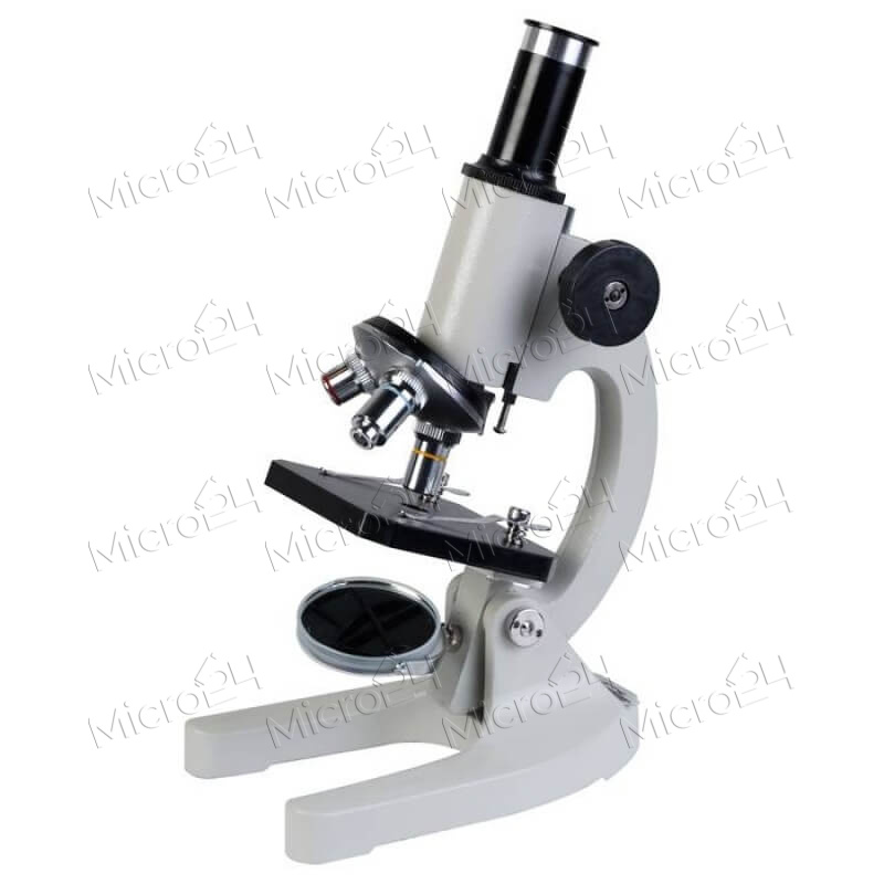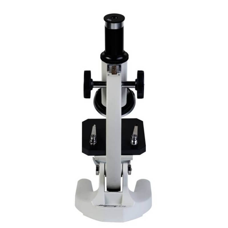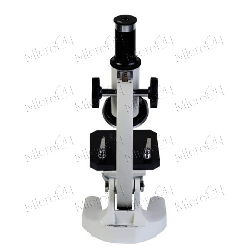 Оптический прибор, позволяющий рассмотреть объекты микромира. Устройство оснащено рукоятками грубой фокусировки, расположенными по обе стороны штатива. Окуляры обеспечивают увеличение в диапазоне 40-800 крат. Конструкция прибора позволяет изучать исследуемый объект и не терять его из поля зрения во время смены объективов. Предусмотрена возможность установки видеоокуляра, что позволит просматривать изображения на ПК или мобильном гаджете. Предметный столик снабжен держателем, исключающим свободное перемещение стекол в процессе наблюдения.